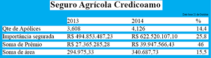 Com evolução expressiva, as movimentações para aquisição de financiamento e seguro agrícola deram um salto significativo, 20% e 25% respectivamente, em relação a safra de verão passada de 2013/2014. As razões para estes números começam desde a mudança cultural que vem ocorrendo no cenário agrícola, onde os produtores rurais já percebem a necessidade de segurar a produção. Dessa forma, no momento de financiar a safra, o seguro já entra no pacote de insumos necessários.
