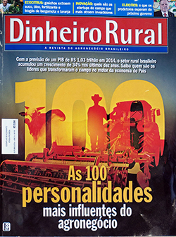 RECONHECIMENTO – Para o jornalista Luis Fernando Sá, diretor editorial adjunto da revista Dinheiro Rural, “Nesses 10 anos da Dinheiro Rural, empreendedores desbravaram novas fronteiras agrícolas, multiplicaram índices de produtividades e provocaram revoluções a partir de estudos feitos por pesquisadores brasileiros. Homenageamos os 100 nomes mais influentes do agronegócio brasileiro renovando o compromisso com a excelência do imenso universo que forma o agronegócio nacional, seja no campo, nas universidades, nas indústrias ou no governo. Que o exemplo deles seja o de todos os outros setores”, afirma.