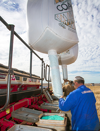 Uma outra novidade que vem sendo testada e que estará à disposição dos cooperados para o plantio da próxima safra de inverno e verão, é a semente em big bags. Cleber Dienis Voidelo, supervisor de unidades da Gerência de Sementes, comenta que é mais um serviço disponibilizado aos cooperados visando comodidade e agilidade no plantio. “Em função do crescente consumo de adubos em bags muitos produtores também procuravam as sementes em bags. Com este novo serviço podemos atender estes cooperados. Para garantir este serviço, estamos fazendo inúmeros testes no transporte, armazenamento e manejo dos bags tanto nas UBs [Unidades de Beneficiamento de Sementes] quanto nas propriedades. Está sendo um trabalho muito válido, pois estamos conseguindo sanar possíveis erros e tirar algumas dúvidas”, comenta.