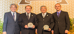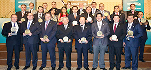 Acima: diretores das 20 empresas premiadas; abaixo: Dr. Aroldo com diretores da Jacto premiada na categoria tratores e máquinas agrícolas
