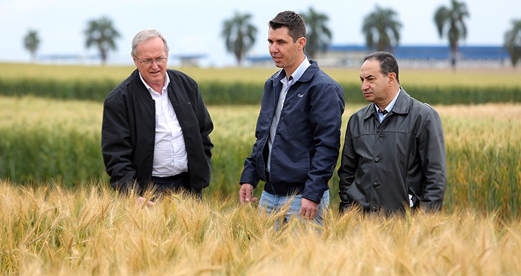 | José Roberto Ricken, presidente do Sistema Ocepar, Marcos Vinícios Garbiate, coordenador de suporte Técnico da Fazenda Experimental, e Aquiles de Oliveira Dias, diretor de Suprimentos e Assistência Técnica da Coamo |