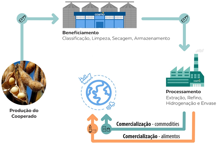 A própria visão da Coamo motivou a industrialização dos produtos. Segundo o diretor Industrial da Coamo, Divaldo Corrêa, cooperativas que possuem indústrias, têm melhores resultados. “É importante ter sempre duas pontas: uma com commodities, produtos in natura, e a outra com produtos industrializados. Isso porque, quando uma não estiver passando por um bom momento, a outra equilibra”, comenta. Ele lembra que o único produto recebido nos armazéns da cooperativa e que ainda não é industrializado é o milho. Porém, já existe estudo de viabilidade para novos projetos.