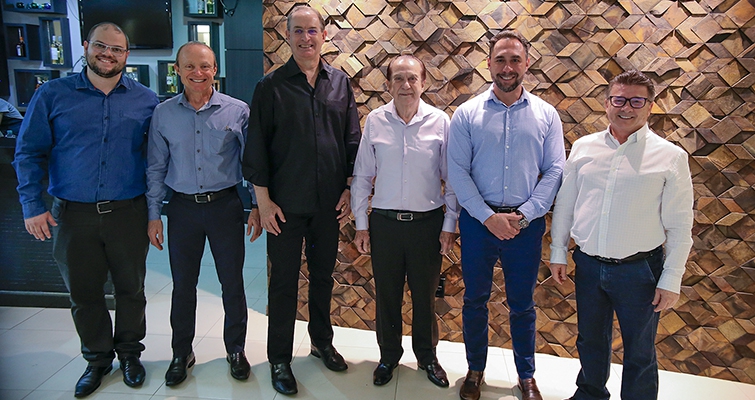 | Paulo Colchon, superintendente da Unimed Campo Mourão; Airton Galinari, presidente Executivo da Coamo; Antonio Carlos Cardoso, vice-presidente da Unimed Campo Mourão; José Aroldo Gallassini, presidente dos Conselhos de Administração da Coamo e Credicoamo; Rodolfo Poliseli, presidente da Unimed Campo Mourão; e Alcir Goldoni, presidente Executivo da Credicoamo |