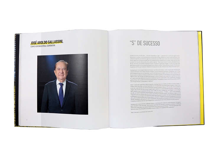 Na obra “Cooperativas – Potência Agro”, com o título “S” de Sucesso, seis páginas foram destinadas para retratar a história de empreendedorismo do engenheiro agrônomo e presidente do Conselho de Administração e idealizador da Coamo, José Aroldo Gallassini. Além da evolução da cooperativa, com a missão de desenvolvimento dos mais de 30 mil cooperados em 52 anos.