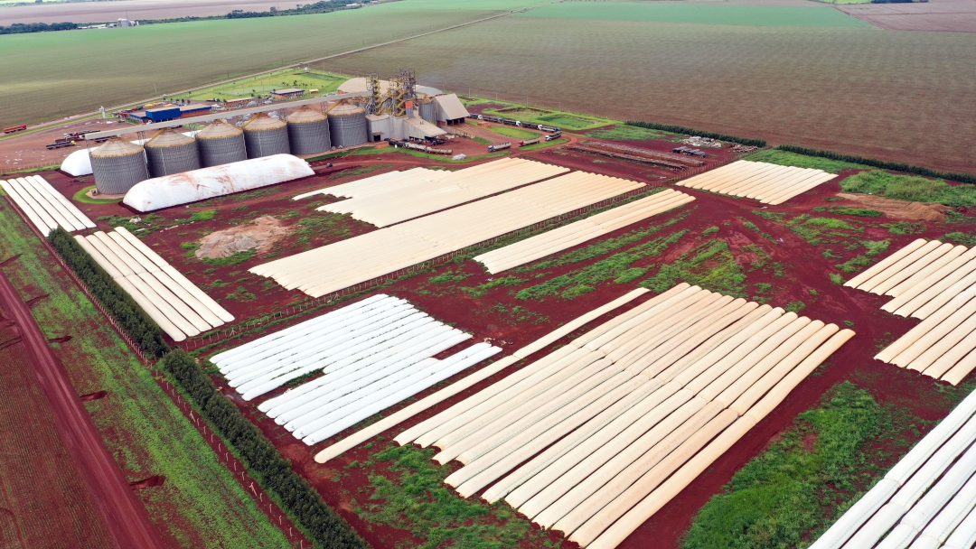 Unidade da Coamo em Sidrolândia (MS) com silos bolsas e infláveis. Alternativa foi instalada em várias regiões para receber a safra dos cooperados