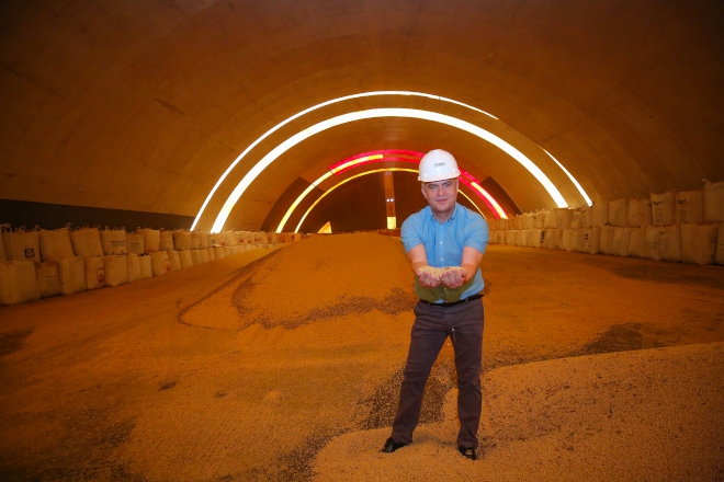 O diretor revela que a previsão é que a cooperativa chegue ao final da safra de soja com cerca de 450 mil toneladas de milho e soja em silos bolsa, principalmente no Mato Grosso do Sul, e entre 80 e 90 mil toneladas de soja em silos infláveis. Além disso, a cooperativa contratou armazéns de terceiros e tem produtos armazenados em vários municípios do Paraná, totalizando cerca de 600 mil toneladas.