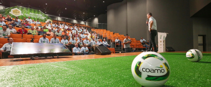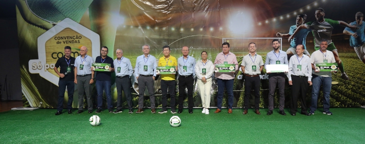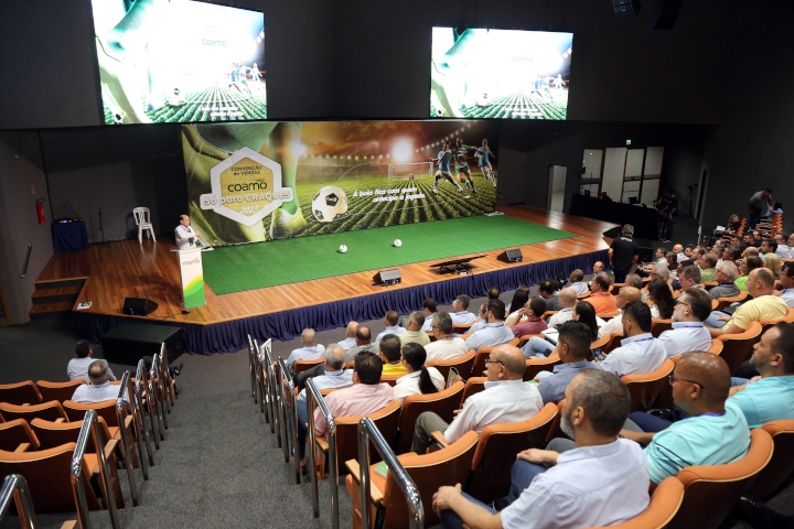 A Coamo realizou a Convenção de Vendas da linha alimentícia no formato presencial. O tema deste ano foi “A bola fica com quem antecipa a jogada”, reunindo cerca de 200 pessoas no anfiteatro do entreposto da Coamo, em Campo Mourão (Centro-Oeste do Paraná). A temática relacionada ao futebol representou a sinergia entre o mundo esportivo e o comercial.