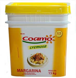 PRODUTO - A margarina Coamo Cremosa, com 50% de lipídios, e com sal, é produzida com alta tecnologia, obedecendo aos critérios de BPF (Boas Práticas de Fabricação) e APPCC (Análise de Perigos e Pontos Críticos de Controle). É formulada com ingredientes especiais que garantem melhor performance em aplicações industriais. É acondicionada em balde que proporciona praticidade de uso e conservação do produto.
