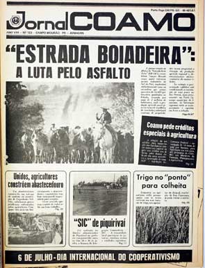 Jun/85: “Estrada Boiadeira: a luta pelo asfalto”. “Pavimentação asfáltica da estrada consolidará Campo Mourão como o maior entroncamento rodoviário do Sul do País.”