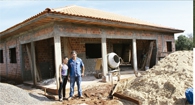 Ao lado da esposa Marlene e das filhas Débora e Suellen, o cooperado Odair garante que a qualidade de vida mudou; no detalhe, a casa ainda em construção