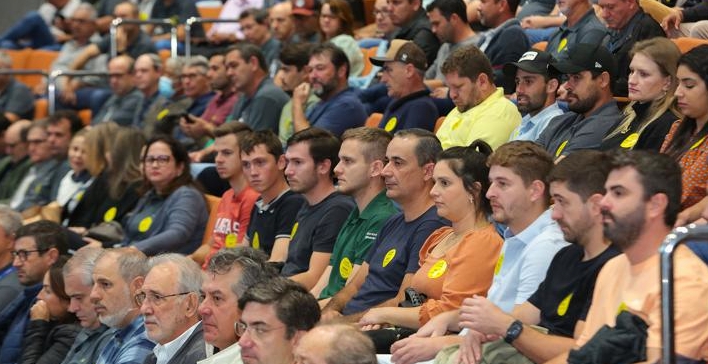 Centenas de cooperados integrantes das 27 turmas do programa de Jovens Líderes Cooperativistas, membros dos Conselhos de Administração da Coamo e Credicoamo, gerentes de entrepostos e assessores estiveram reunidos no anfiteatro da cooperativa em Campo Mourão, no dia 30 de junho, para o tradicional Encontro de Jovens Líderes da Coamo e para celebrar o Dia Internacional do Cooperativismo.