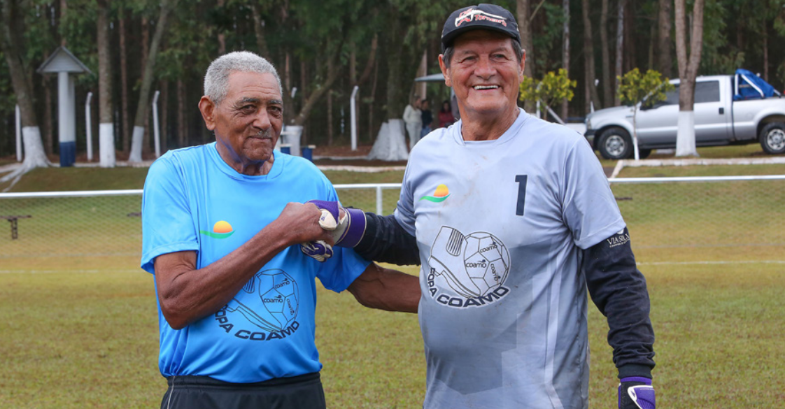 Em Luiziana, um encontro especial ocorreu durante a Copa Coamo entre dois veteranos. Itacir de Souza Campos, de Corumbataí do Sul, com 81 anos, e Eliezer Pedroso, com 78 anos. Seu Itacir mostrou que a idade não é empecilho para participar da ompetição, atuando na posição de zagueiro. Para ele, é extremamente importante fazer parte desse evento. Itacir participou praticamente de todas as edições da Copa Coamo e entrar em campo para brincar com os amigos é um prazer imenso. “Enquanto estiver com saúde para jogar, farei questão de continuar participando”, diz. Seu Eliezer atuou como goleiro. Ele expressa a satisfação de encontrar um companheiro como Itacir e a alegria de participar do esporte, mesmo com essa faixa etária. “É gratificante fazer parte da Copa Coamo e entrar em campo enquanto a saúde permitir”, frisa.