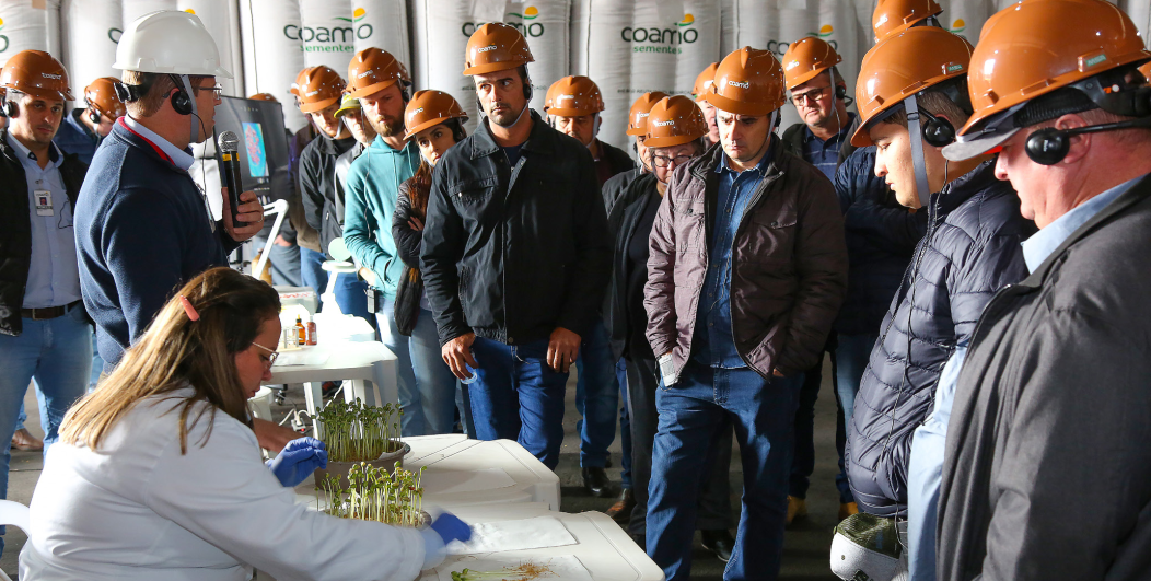 Cerca de 500 cooperados, de 44 unidades da Coamo no Paraná, Santa Catarina e Mato Grosso do Sul, participaram da terceira edição do Tour de Sementes realizado na UBS de Furnas, em Manoel Ribas (Centro do Paraná) entre os dias 19 e 22 de junho. Os associados conheceram de perto os processos de produção, beneficiamento, armazenamento, análise, tratamento industrial e medidas que garantem a máxima qualidade das sementes Coamo.