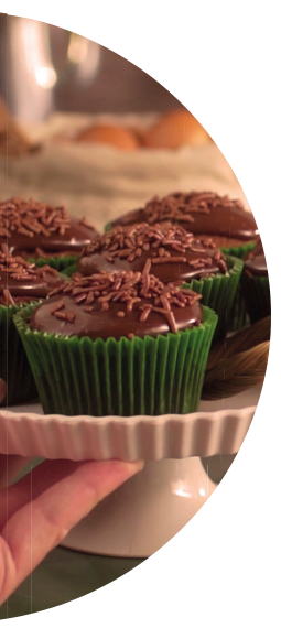 | Misturar todos os ingredientes em uma panela e levar ao fogo, mexendo sempre. Cozinhar por 2 minutos depois que levantar fervura. Reservar para usar em temperatura ambiente. Desenformar os cupcakes ainda mornos e deixar esfriar sobre uma grade. Cobrir os cupcakes com o brigadeiro e polvilhar chocolate granulado |