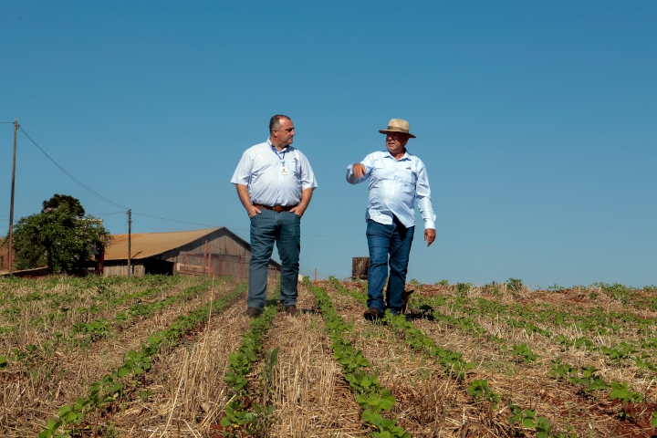 | Sérgio Aparecido dos Santos Matias, coordenador da unidade da Coamo em Corumbataí do Sul, e o cooperado Paulo Roberto Santiago |