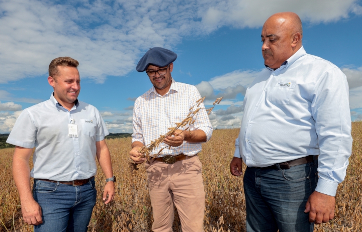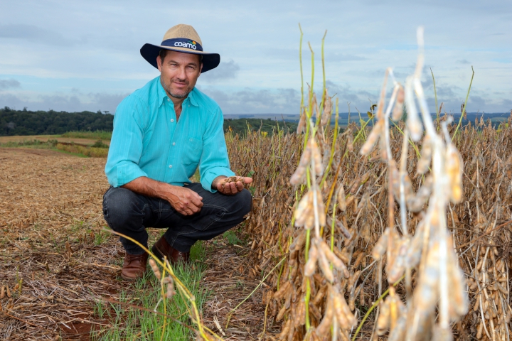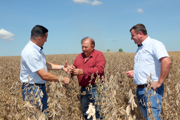 EM RIO BRILHANTE (SUDESTE DE MATO GROSSO DO SUL), o cooperado Volmir Perin Meazza, finalizou a colheita ainda na primeira quinzena de março. Ele conta que a safra foi bastante desafiadora. “Foi um ano muito quente e faltou chuva. Colhemos bem abaixo da média que esperávamos, em torno de 40 a 45 sacas por hectare. Em áreas onde pegou um pouco mais de chuva, chegamos a 50 sacas por hectare, mas na outra, em torno de 32 sacas", revela e acrescenta que o investimento foi para colher 70 sacas por hectare, “Infelizmente, devido à falta de água, não foi possível atingir essa meta”, frisa.