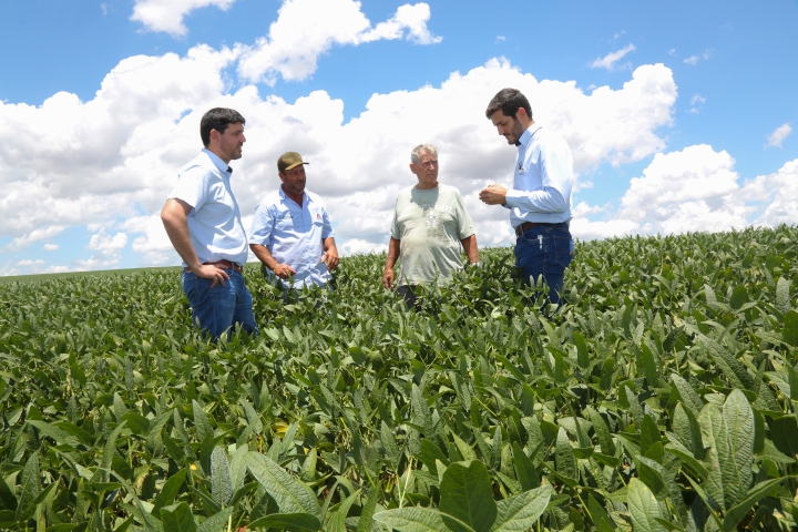 | Laércio Stabille Junior, gerente da Unidade, cooperados Emerson e Francisco Weber, e Gabriel de Souza Dossi, engenheiro-agrônomo |