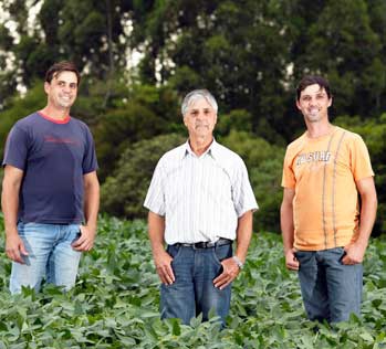 “A todo momento surgem novidades no mercado, e graças a Coamo temos acesso à elas”, Elói com os filhos Clóvis e Giovano Dallposso, de Ouro Verde do Oeste