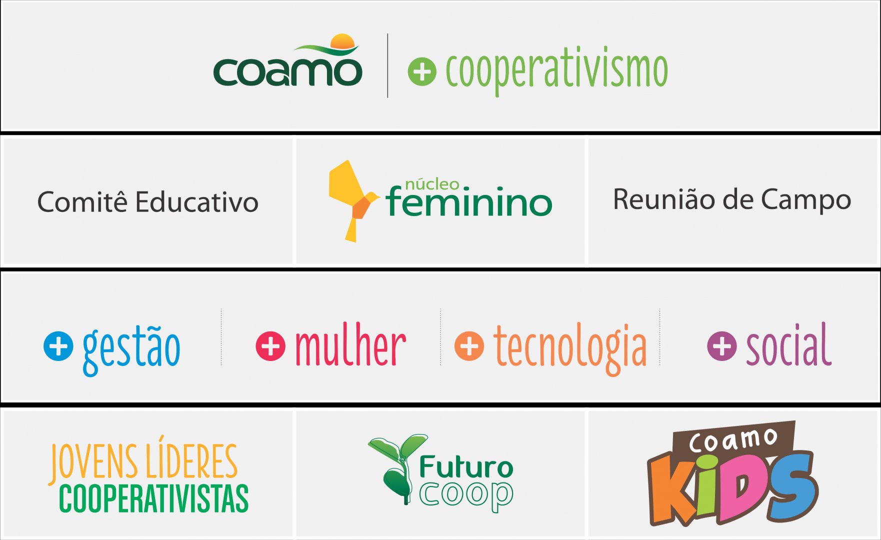 Segundo José Ricardo Pedron Romani, assessor de Cooperativismo da Coamo, a proposta foi chamar a atenção dos jovens para a importância que eles têm na propriedade rural, na família, como possíveis sucessores, e também como sucessores na cooperativa. Ele explica que a Coamo conta com vários programas que visam atender 100% dos cooperados e familiares. “Começa com as crianças no Coamo Kids, de quatro a 12 anos, passa pelo FuturoCoop, de 13 a 17 anos, segue com os jovens líderes, acima de 18 anos, e conta com vários outros programas que atendem os cooperados e familiares”, diz.