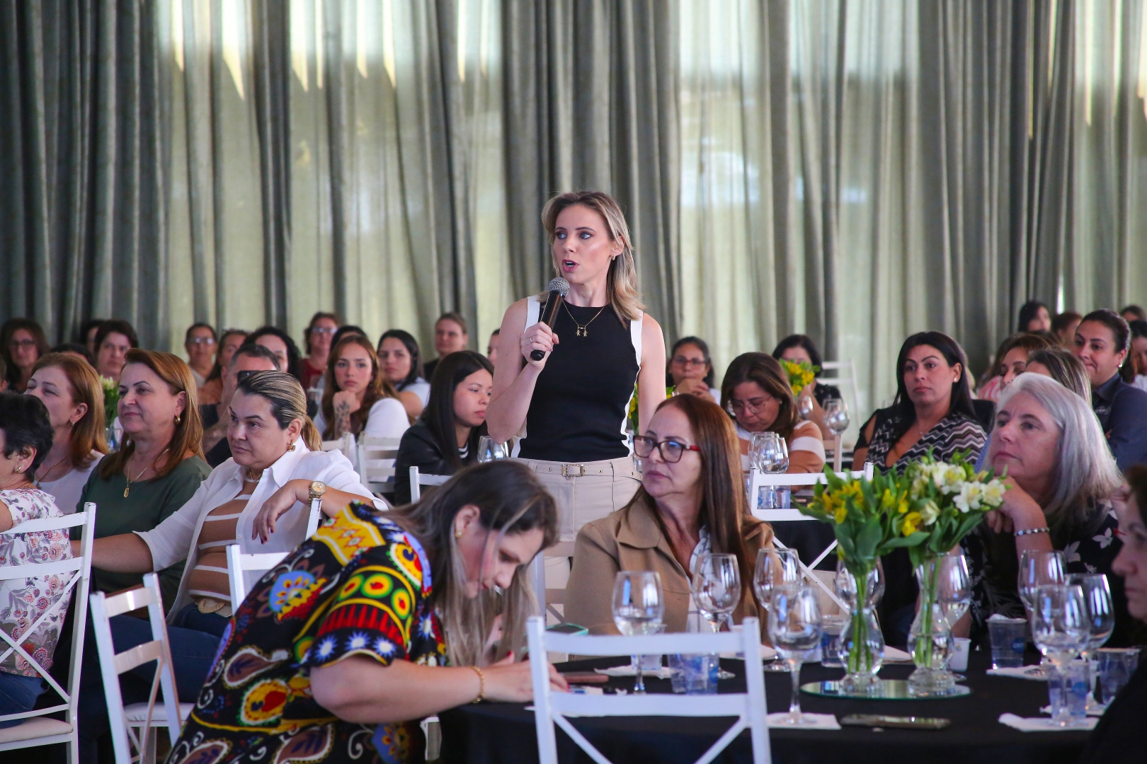 As presentes acompanharam duas palestras. A primeira sobre a relação entre gerações e comunicação nas propriedades rurais, com a relações públicas Thaís Jerônimo Duarte. A ideia da palestra foi apresentar as características de cada geração. “Eu falei da geração silenciosa dos baby boomers, da geração X, Y, Z pra que elas pudessem primeiro se entender dentro da geração e entender o porquê tem tantas diferenças quando se conversa com os pais, com os filhos, com os netos. Depois eu trouxe alguns conselhos de que elas podem aplicar tanto dentro de casa quanto no ambiente de trabalho, começando pela importância do ouvir.”