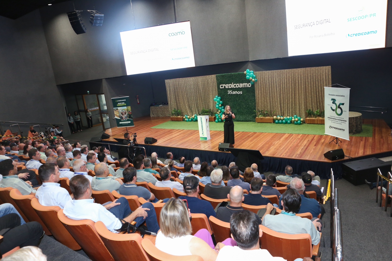 Evento de comemoração dos 35 anos da Credicoamo contou com uma palestra sobre prevenção a crimes cibernéticos, com Rosana Botelho