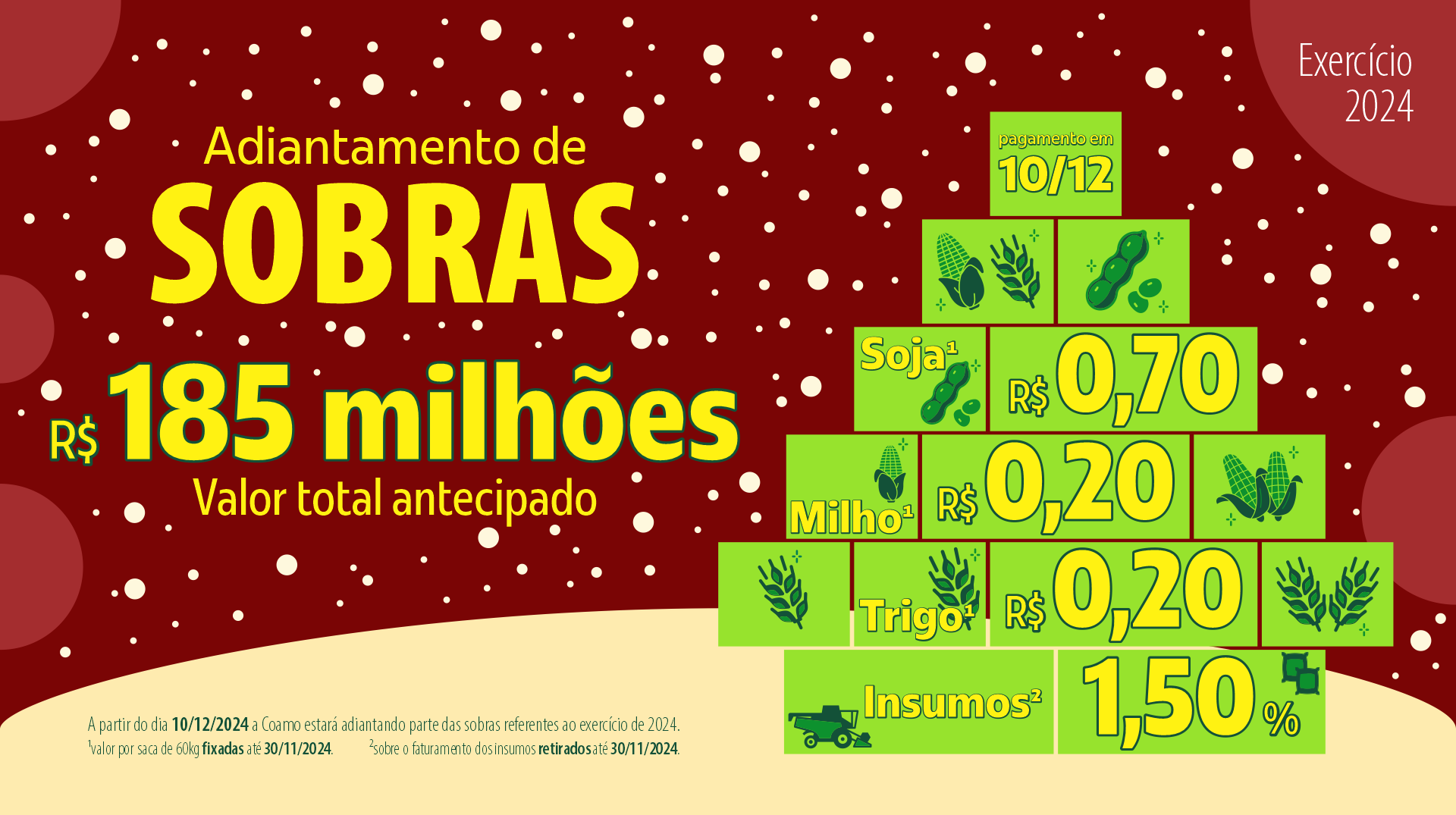 Os associados da Credicoamo receberam no dia 12 de dezembro, a antecipação de sobras sobre o capital social. O valor ultrapassa R$ 45 milhões e representa mais um benefício do sistema cooperativista, fortalecendo a parceria entre a cooperativa e os mais de 28,6 mil associados.