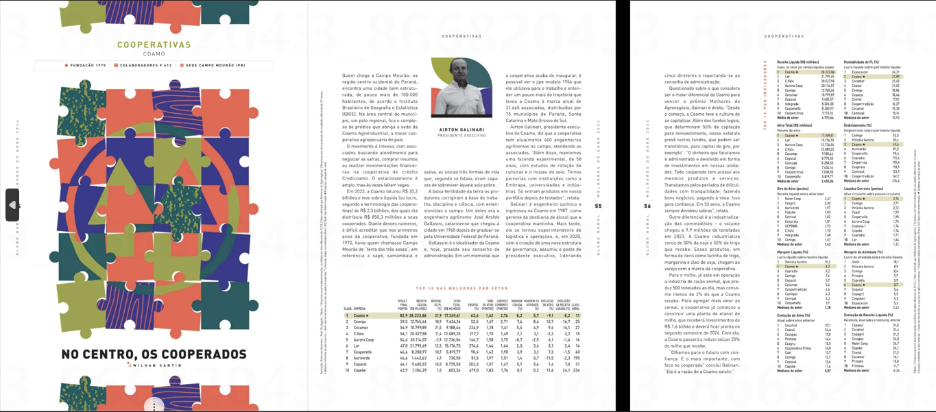 "Além disso, mantemos uma fazenda experimental, há 50 anos, com estudos de rotação de culturas e o museu do solo. Temos parcerias com instituições como a Embrapa, universidades e indústrias. Só entram produtos em nosso portfólio depois de testados", relata. Galinari é engenheiro químico e ingressou na Coamo em 1987, como gerente da destilaria de álcool que a cooperativa mantinha. Mais tarde, ele se tornou superintendente de logística e operações, e, em 2020, com a criação de uma nova estrutura de governança, assumiu o posto de presidente executivo, liderando cinco diretores e reportando-se ao conselho de administração.