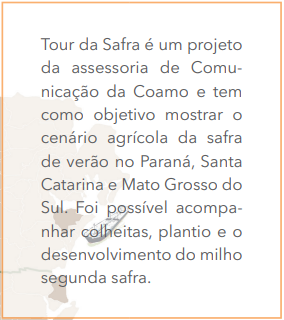 Ele destaca ainda o papel da Coamo na segurança do produtor. "Temos uma grande cooperativa, que dá suporte e segurança para nós. Isso é fundamental. Não adianta plantar, colher e depois ter prejuízo na comercialização. Precisamos de estabilidade para cumprir nossos compromissos", conclui.