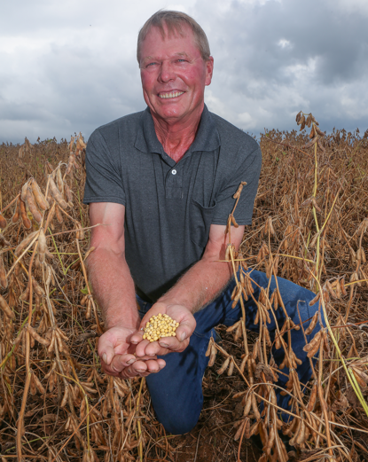 EM TOLEDO (OESTE DO PARANÁ), o cooperado Celso Miguel Pörsch, com 52 anos de experiência no cultivo de soja, compartilha os resultados de uma safra histórica, com média de 182 sacas por alqueire, um recorde pessoal. Ele cultivou um total de 105 alqueires com a cultura. "O clima foi muito generoso com a gente e, consequentemente, conseguimos uma safra histórica", destaca Pörsch, que atribui o sucesso ao trabalho contínuo na correção e fertilização do solo. "Quando as chuvas acontecem no momento certo, o sucesso com certeza vem", completa. Para ele, o acompanhamento técnico da Coamo tem sido fundamental, pois oferece a assistência necessária no manejo de pragas e doenças, além de orientações detalhadas sobre o desenvolvimento da lavoura.