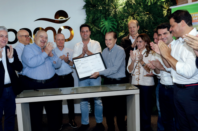 O investimento da Coamo será de R$ 1,7 bilhão, sendo R$ 500 milhões em fi nanciamento aprovado pelo Banco Nacional de Desenvolvimento Econômico e Social (BNDES) com recursos do Fundo Clima. “É uma alegria participar desse momento histórico, a primeira grande indústria de etanol de milho do Paraná, uma planta bilionária de investimentos da Coamo, consolidando o Paraná como um dos maiores produtores de biocombustível do Brasil”, afirma Ratinho Junior. “Ela já nasce ultramoderna, pois além de produzir o etanol de milho, que é um combustível sustentável, terá também autogeração de energia, fazendo com que essa indústria seja autossufi ciente e abasteça as demais plantas do parque industrial da Coamo”, acrescenta.
