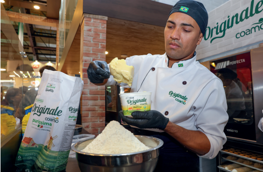 A nova marca foi o grande destaque da participação da Coamo na feira. Com o lançamento ofi cial da margarina Originale, somando-se às farinhas de trigo puríssima e integral, a cooperativa apresentou ao mercado uma linha de produtos que resgata o melhor da gastronomia tradicional com o selo de qualidade que já é reconhecido pelos consumidores da marca Coamo.