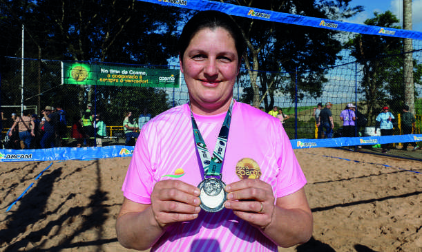 Fernanda participou do vôlei de areia feminino e destaca a importância da presença das mulheres. “Hoje é dia de cooperativismo, de compartilhamento, de celebrar a nossa família.” Segundo ela, a equipe foi formada por amigas da cidade. “Ninguém é profissional, mas nós somos felizes jogando vôlei de areia.”