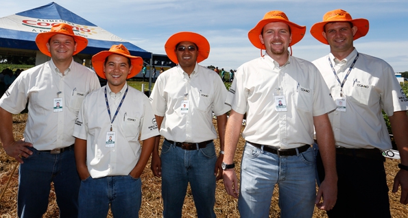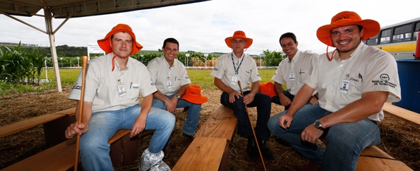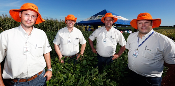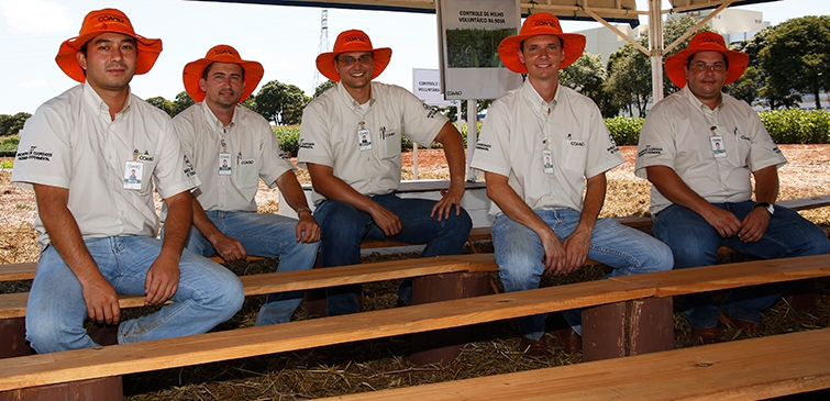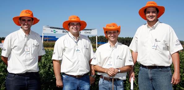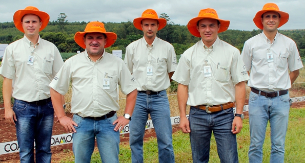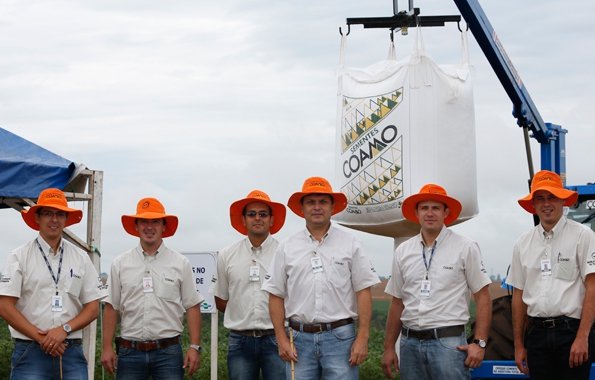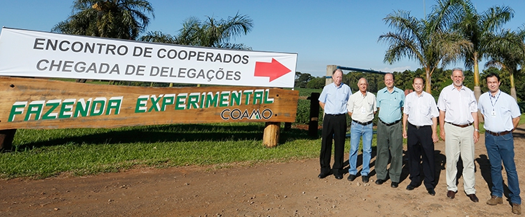 EQUIPE COAMO: José Varago (superindentende Técnico), Joaquim Mariano Costa (coordenador da Fazenda Experimental), Ricardo Accioly Calderari (diretor-secretário), José Aroldo Gallassini (diretor-presidente), Claudio Francisco Bianchi Rizzatto (diretor-vice-presidente) e Marcelo Sumiya (gerente de Assistência Técnica)