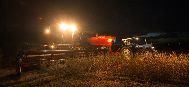 O clima tem sido bastante instável fazendo com que o trabalho seja acelerado nas regiões em que a soja já está pronta para colher. Quando o sol aparece, agricultores não perdem tempo e trabalham intensamente para retirar a soja do campo. Isso quando não entram noite afora colhendo, como é o caso do cooperado Fernando Grégio, de Campo Mourão (Centro-Oeste do Paraná).