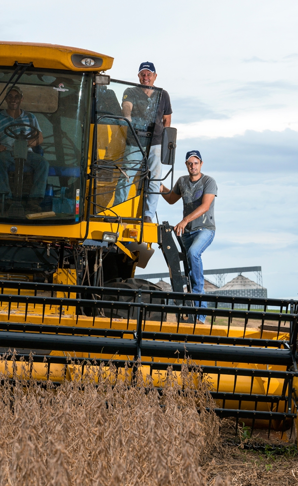 Na região de Pitanga (Centro do Paraná) também as máquinas estão no campo. A colheita se concentra no final de março e início de abril, mas as primeiras áreas mostram números animadores. Na propriedade da família Portugal a média ficou em 160 sacas de soja por alqueires e 500 de milho. “Os números foram dentro do esperado e é resultado do investimento realizado”, comenta Ricardo, que trabalha em parceria com o pai João Adilson Portugal e o irmão João Adilson Portugal Júnior.