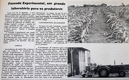 A iniciativa foi destaque na edição de novembro de 1975 do Jornal Coamo com a matéria “Fazenda Experimental, um grande laboratório para os produtores”. O texto afirmava que numa área de 35 alqueires a cooperativa estava desenvolvendo uma agricultura modelo, com novas técnicas aplicadas, procurando alcançar a maior produtividade possível”.