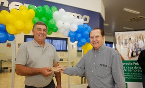 Eneas Scheidt Rickli representou os demais associados com a primeira aquisição na nova loja de peças |