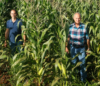 Com o passar dos anos, a tecnologia foi ganhando ajustes necessários, que estão contribuindo diretamente para a melhoria e longevidade do sistema. O mais significativo e importante ocorreu na Fazenda Pejuçara, de propriedade do cooperado Celso Luiz Villani. Ele conta que em 2008 começou a fazer o consórcio com o mesmo objetivo dos produtores da região: diminuir o estresse hídrico provocado durante os veranicos. Daquele ano em diante a tecnologia foi testada de várias formas na busca por soluções que aperfeiçoassem o sistema. Foi aí que Celso e o filho Daison começaram a fazer o consórcio com a implantação de uma linha de brachiária e duas de milho, inovando a tecnologia. “Passamos a fazer isso na safra de 2012 e deu certo. Desta forma, a brachiária concorre menos com o milho e praticamente não existe perda. Mesmo com pouca população de plantas de brachiária, quando tiramos o milho ela se espalha rapidamente cobrindo o solo da mesma forma que o sistema tradicional”, argumenta.