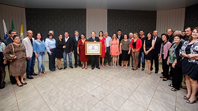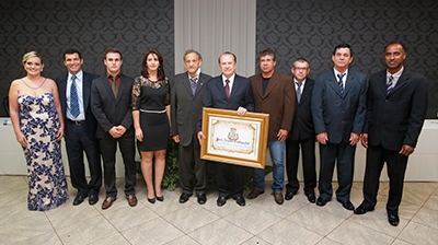 Homenageado com vereadores e o prefeito