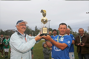 Edson Carmello, de Moreira Sales, recebe o troféu de campeão em Goioerê |