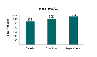 O gráfico ilustra a importância de utilizar diferentes culturas de adubo verde para anteceder o milho verão. O plantio de leguminosas como, por exemplo, o tremoço e a ervilhaca, influencia positivamente na produtividade devido ao fornecimento de nitrogênio fixado biologicamente. |