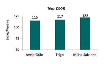 Ainda que seja perceptivo, a melhor produtividade do trigo sobre o milho safrinha quando comparado a aveia e trigo, é indispensável utilizar todas as alternativas num mesmo talhão, diversificando e rotacionando as culturas no inverno, pois além do rendimento do trigo, deve-se considerar a produtividade da soja cultivada na sequência sobre estas culturas. |