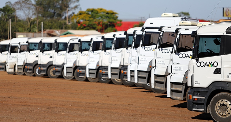 A Coamo embarca mais de mil caminhões diariamente durante a safra, seja transportando produtos entre as unidades, paras as indústrias ou ainda para os portos, principalmente em Paranaguá (PR). Do total de caminhões, 280 fazem parte da frota própria e 400 da dedicada, que são caminhões contratados de transportadoras para trabalhar durante o ano todo. Outra modalidade de transporte é o chamado frete spot, onde são contratados caminhões conforme a necessidade, considerando sempre as vendas, exportação e atendimento às indústrias. Segundo o gerente de Transporte e Veículos da Coamo, Lúcio Flávio Barboza, durante a safra, a frota fica focada em fazer as remoções, já que as unidades trabalham com a capacidade 100% completa. Ele acrescenta que com esforço e priorizando a abertura de espaço nos armazéns, toda a produção dos cooperados é recebida de forma rápida e segura. “A harmonia e sinergia entre as áreas é que faz com que a safra transcorra sem grande transtorno. Temos uma ou outra dificuldade, mas sempre com solução pronta graças as ações sinérgicas e interativa das diversas áreas envolvidas”, comenta Barbosa.