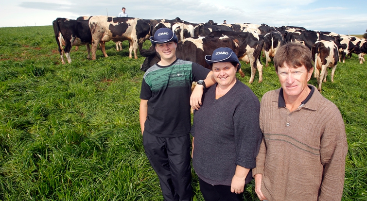 Leonir com o filho Tiago e a esposa Janete Litwin; família tem investido e conseguido bons resultados com o leite