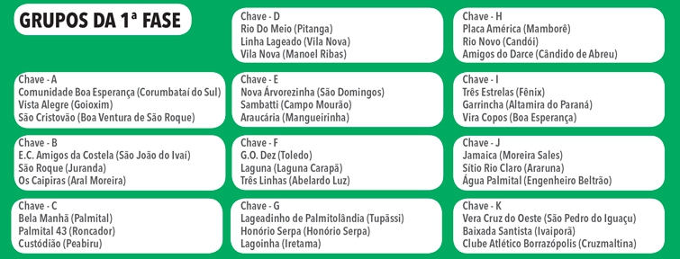 Os jogos da Regional Sede foram realizados em Araruna, Campo Mourão, Luiziana, Mamborê e Peabiru. A rodada teve bom público e nível técnico e grande integração. Foram 62 times e 255 gols marcados em 100 jogos.