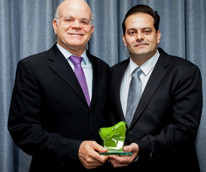 Divaldo Corrêa, superintendente Industrial da Coamo, recebeu o troféu das mãos de Rodrigo Coutinho, coordenador do Prêmio Expressão de Ecologia