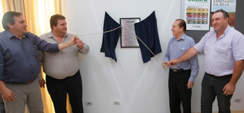 Cláudio Leal, prefeito de Santa Maria do Oeste, Elio Didimo, presidente da Câmara de Vereadores, José Aroldo Gallassini, diretor-presidente da Coamo e Edison João Sprotte, cooperado