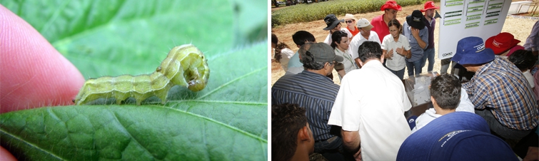 Helicoverpa: Quando chegou ao Paraná, muita gente se assustou, contudo, apesar de estar em todas as áreas as populações foram muito baixas; À direita: Cooperados foram orientados de como diferenciar a helicoverpa de outras pragas