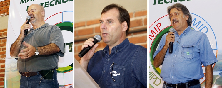 À esquerda: José Renato Bouças Farias, chefe-geral da Embrapa Soja; Ao centro: Alexandre Cattelan, chefe-adjunto de Transferência de Tecnologia da Embrapa Soja; À direita: Luiz Carlos Miranda, gerente de produtos da Embrapa