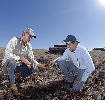 Helder Fernando Borges, de Juranda, com o agrônomo Alessandro de Oliveira: definição do que e quando plantar passa pela assistência técnica da Coamo
